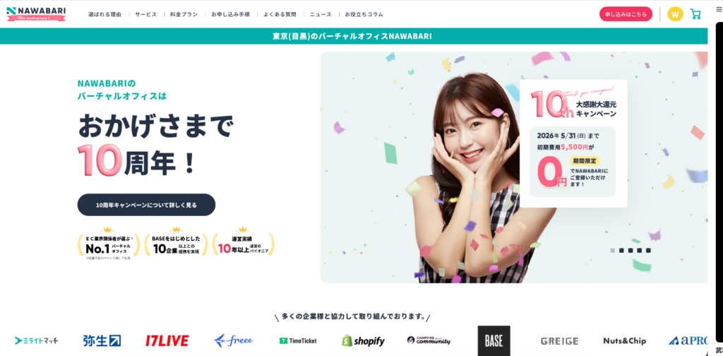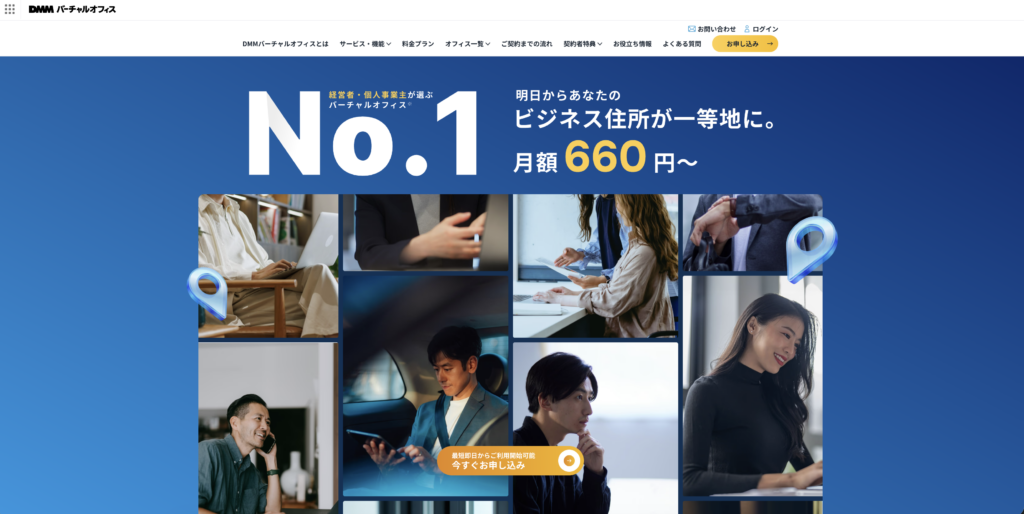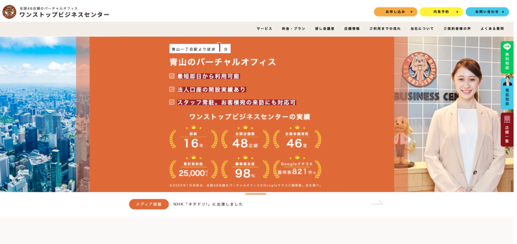 | 主なサービス内容 | バーチャルオフィス・法人登記・郵便物転送・電話秘書代行・銀行口座開設サポート |