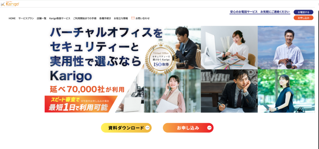 Karigoは全国に62か所の拠点を設ける、バーチャルオフィスの老舗です。国内オフィスは北海道から沖縄まで構えており、アメリカのテキサス州にも拠点があります。日本にいてもテキサス州の住所をレンタル可能なため、海外向けのビジネスを行いたい方にぴったりのバーチャルオフィスです。